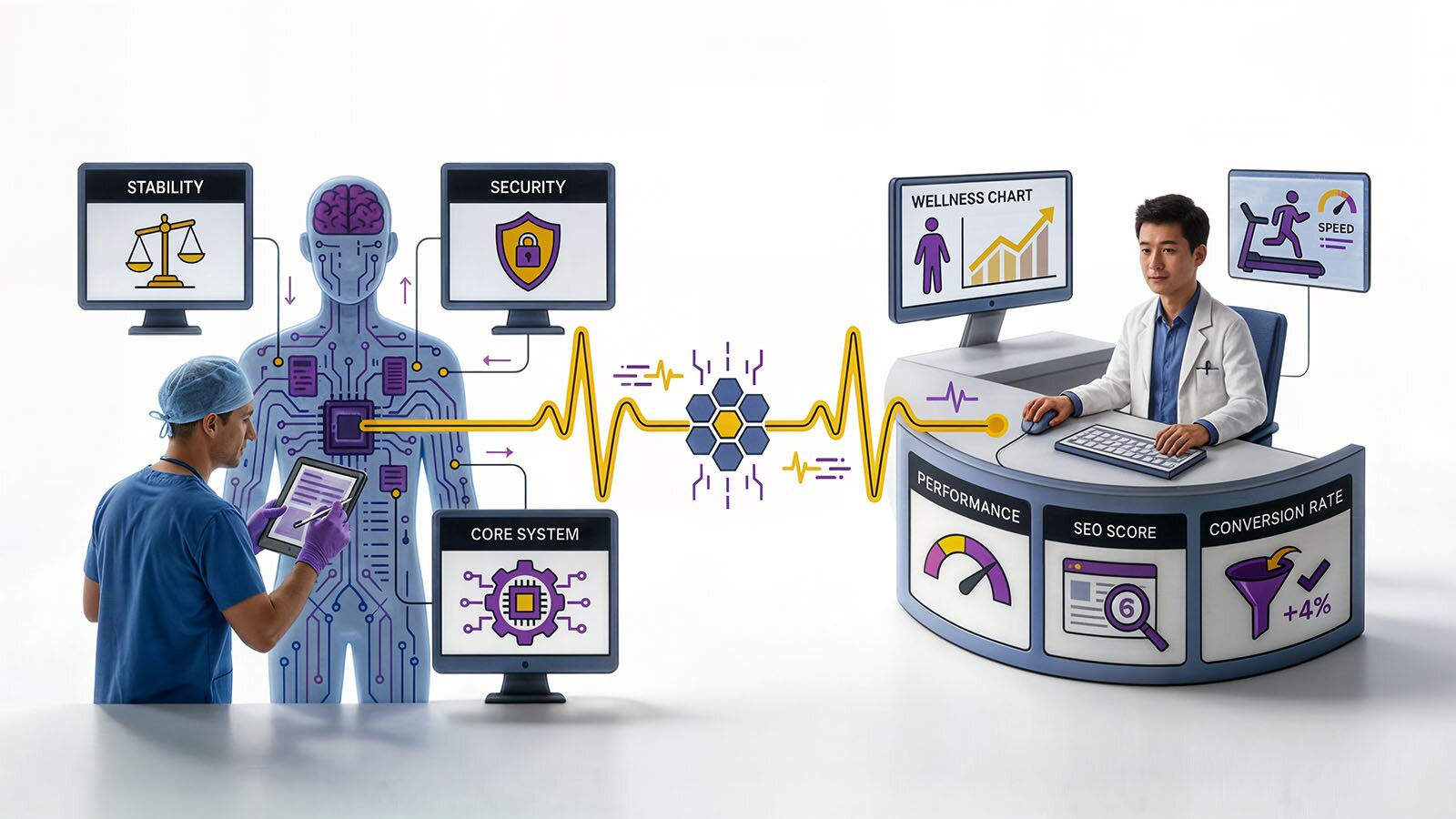 - Marketing developers are the rehab experts, making sure the patient (your website) performs at its best every day.